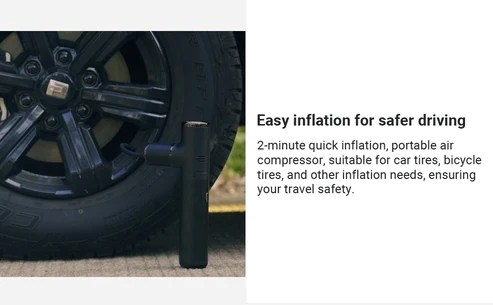 1 minute quick inflation, portable air compressor, suitable for car tires, bicycle tires and other inflating necessities, ensuring your travel safety.